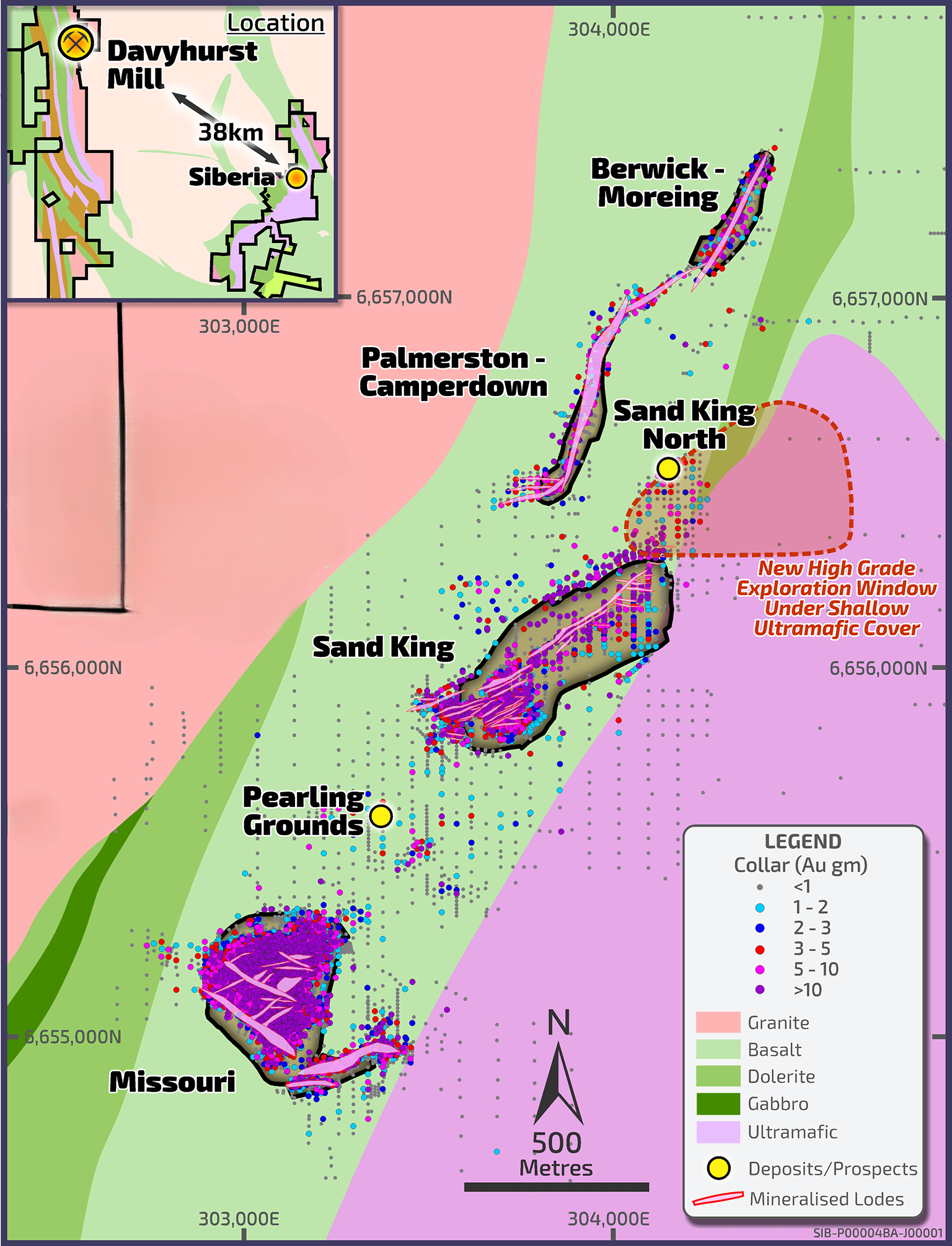 The Siberia is a large project located 37km south-east of the Davyhurst processing plant covering a greater than 140km2 of the Ora Band Domain bounded by two major shear zones; the Zuleika Shear, to the west, and the Bardoc Tectonic Zone to the east.
